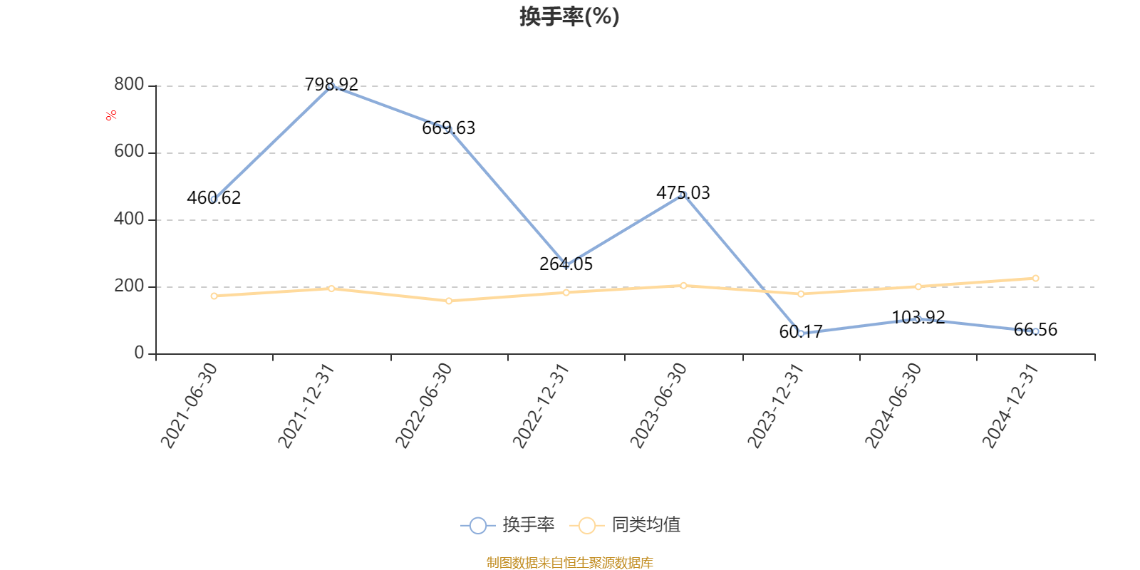 截至2024年12月31日,基金最近一年换手率约170.97%,持续1年低于同类均值。