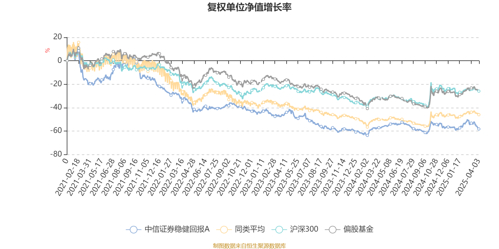 截至4月3日,中信证券稳健回报A近三个月复权单位净值增长率为2.52%,位于同类可比基金504/646;近半年复权单位净值增长率为-11.73%,位于同类可比基金629/646;近一年复权单位净值增长率为-4.22%,位于同类可比基金575/639;近三年复权单位净值增长率为-37.43%,位于同类可比基金465/488。