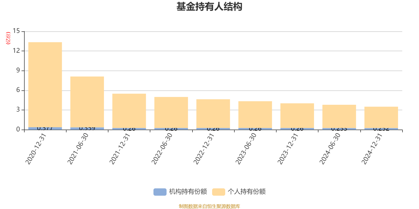 截至2024年12月31日,基金持有人共计8137户,合计持有3.51亿份。其中管理人员工持有723.89份,机构持有份额占比7.17%,个人投资者占比92.83%。