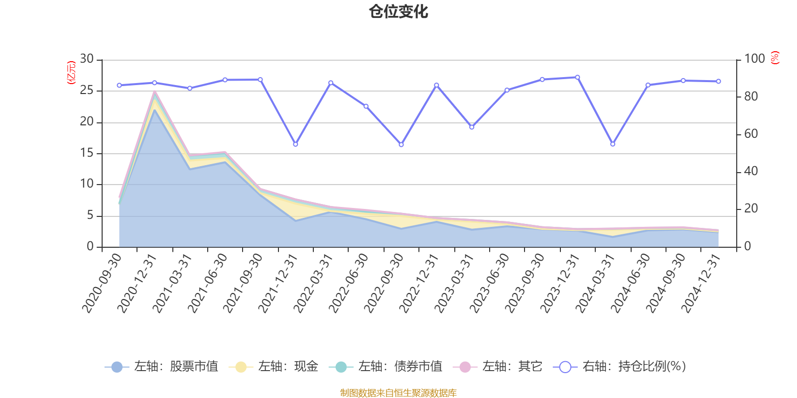 据定期报告数据统计,近三年平均股票仓位为79.21%,同类平均为84.97%。2023年末基金达到90.62%的最高仓位,2022年三季度末最低,为54.67%。